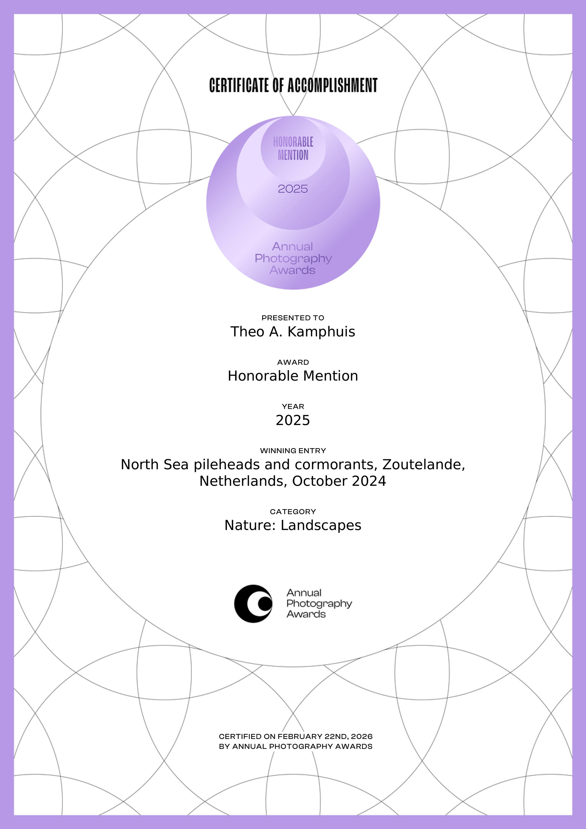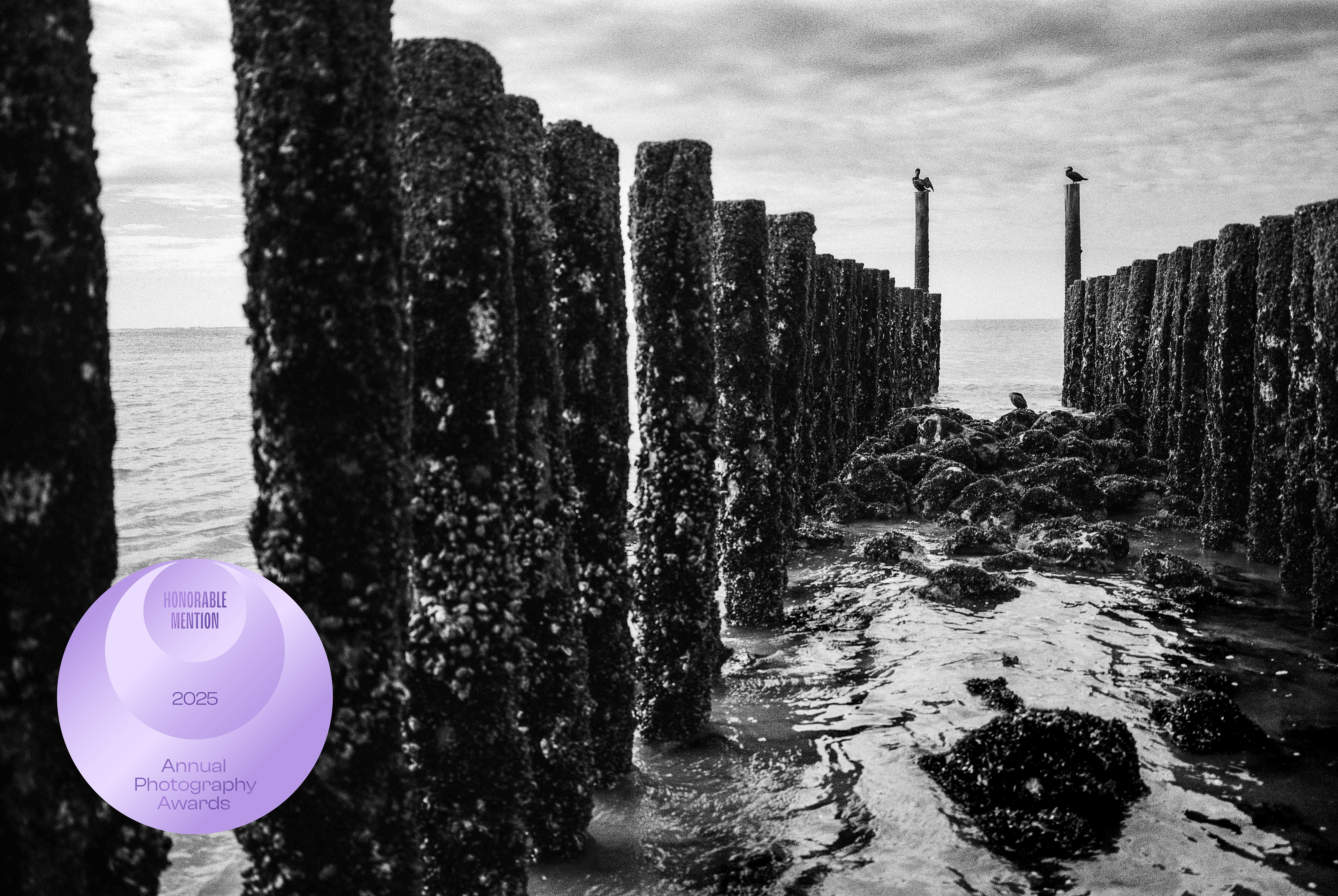 The photo series featuring cormorants on the pile heads along the coast of Zeeland, Netherlands continues to do well in international photography competitions. Today, I received an email about an honourable mention in the “Annual Photography Awards 2025”.